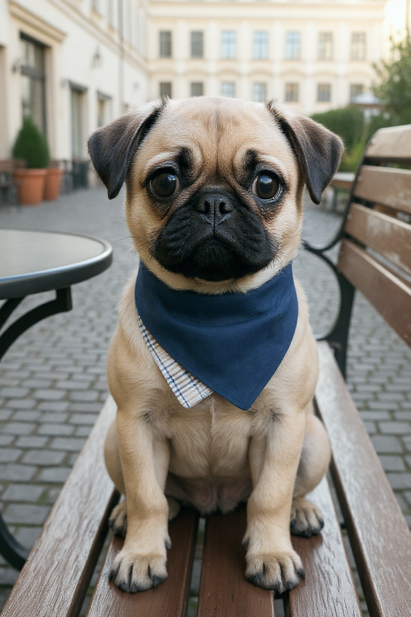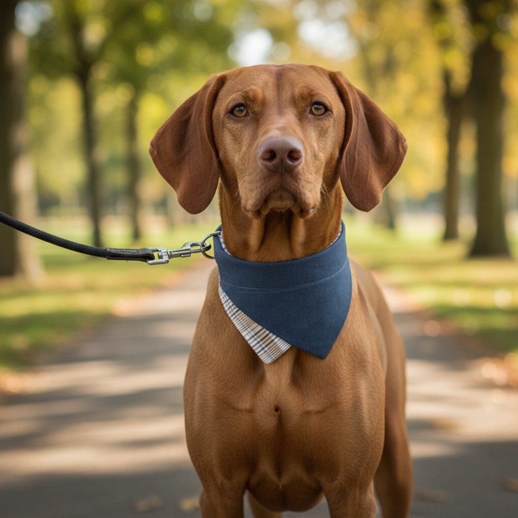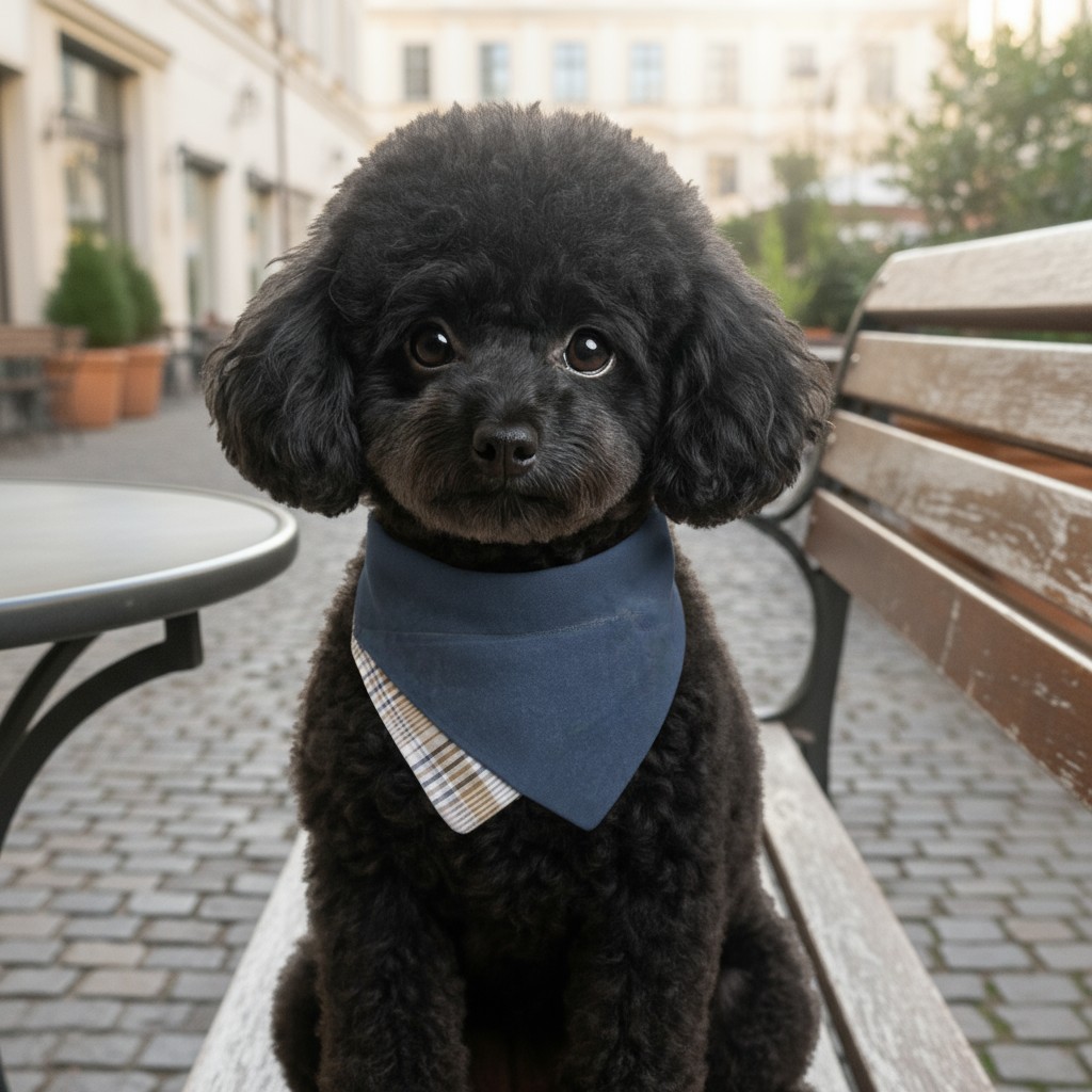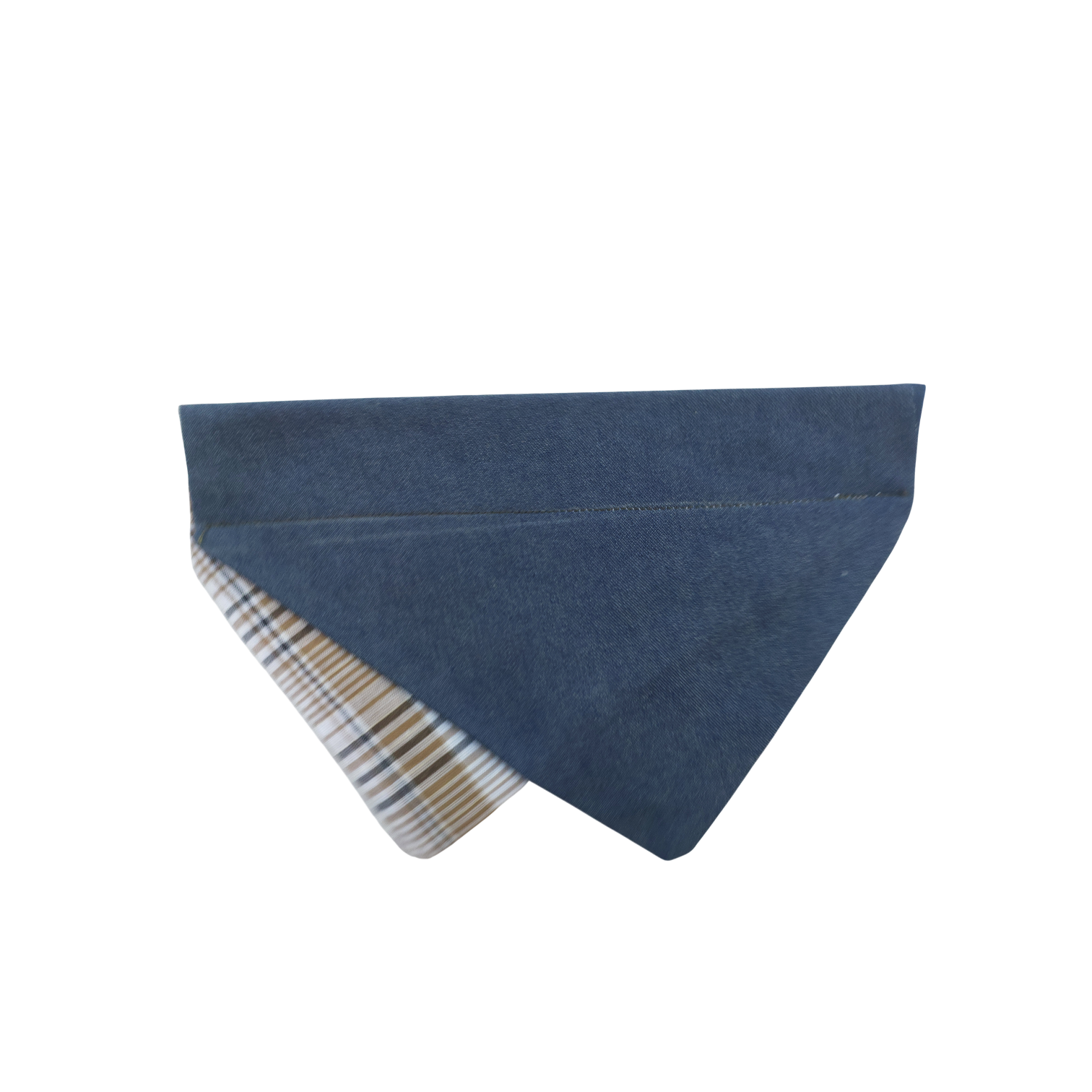 Lacivert Denim ve Kareli Kumaş Çift Katlı Tasmaya Takılabilir Bandana