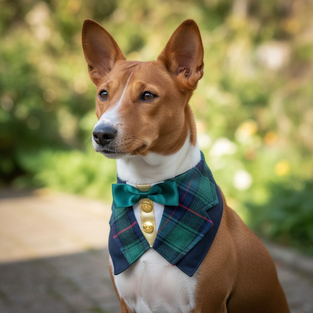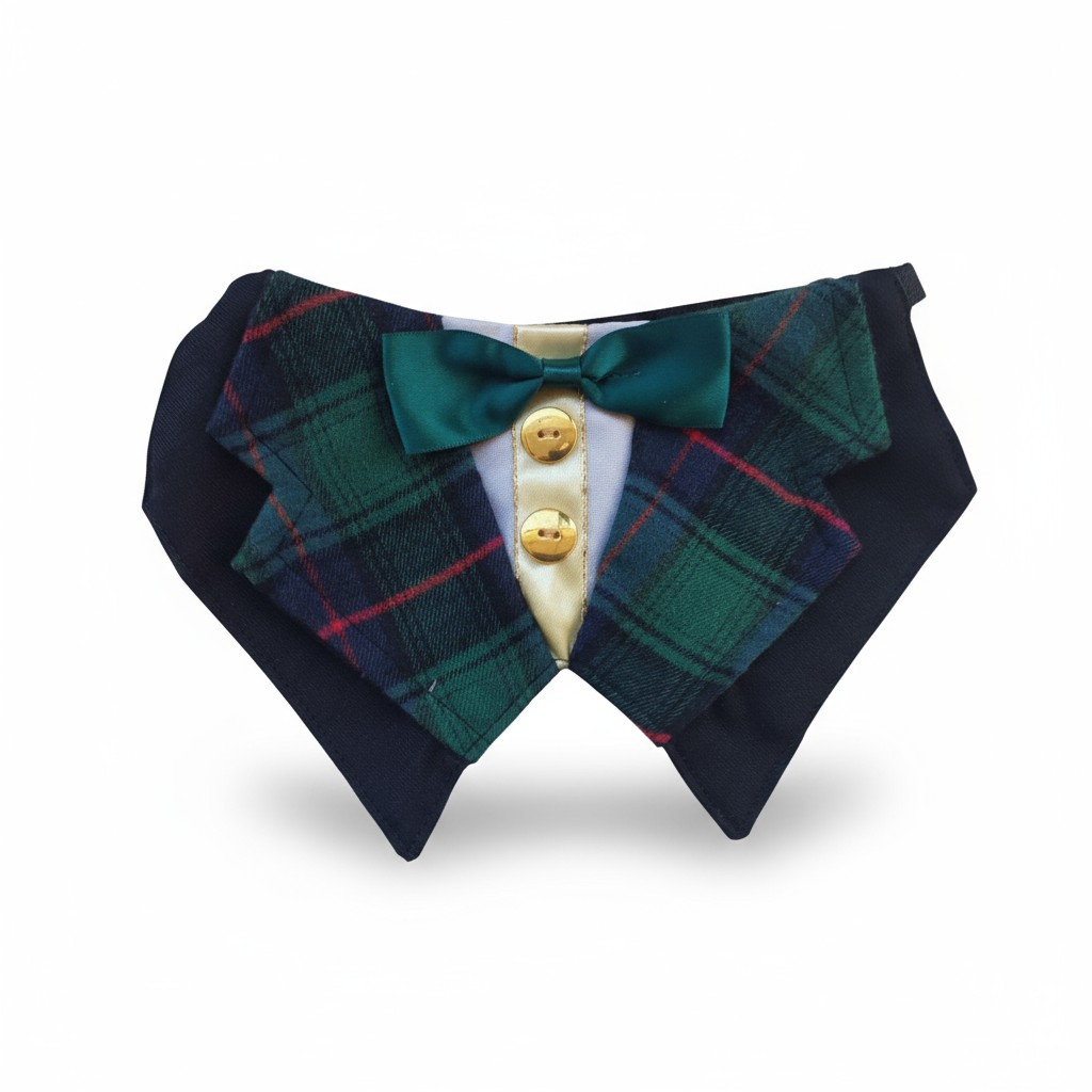 🌍 Handmade tuxedo-style collar with green satin bow — timeless elegance for your classy companion.