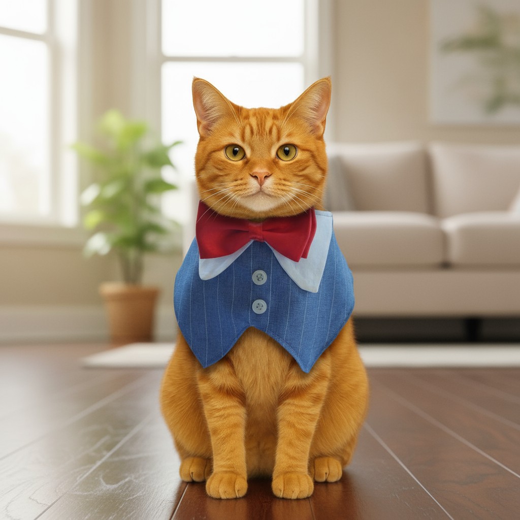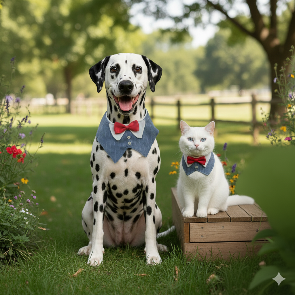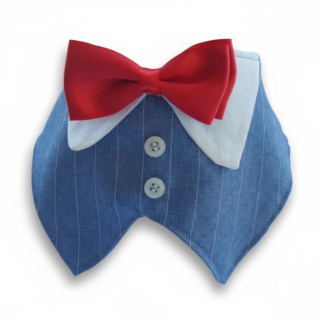 Mavi Çizgili Kumaş Gömlek Yaka Kırmızı Papyonlu Kedi & Köpek Yakası – FEDD’s Pet Style