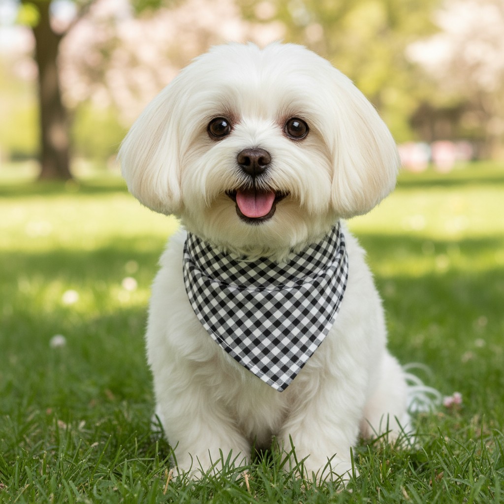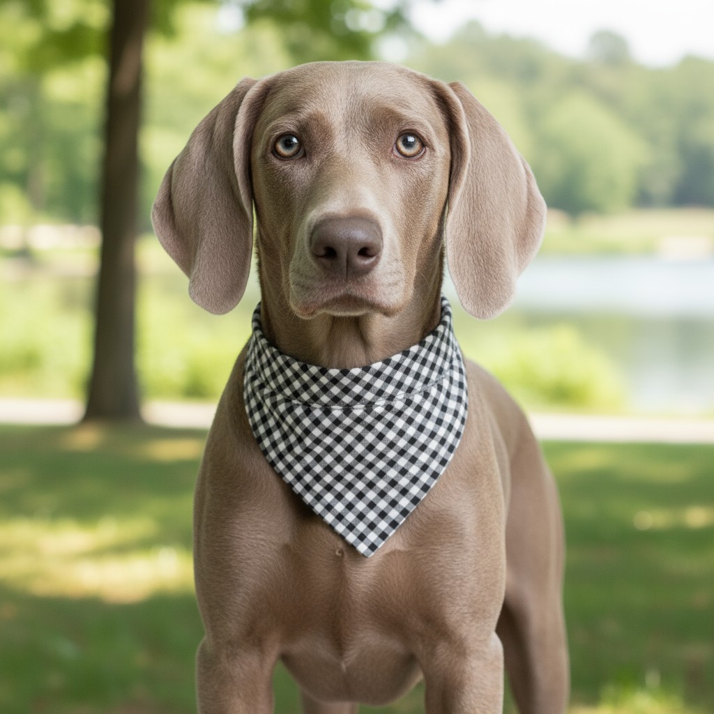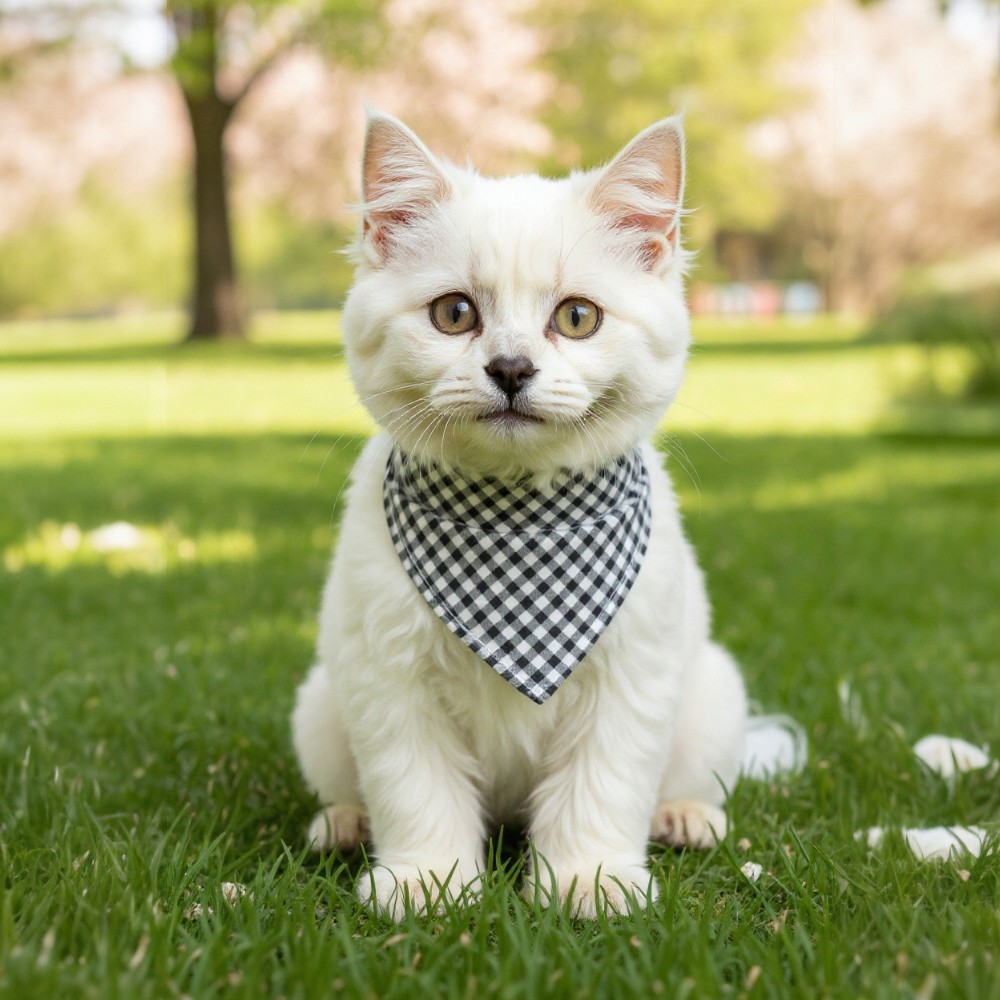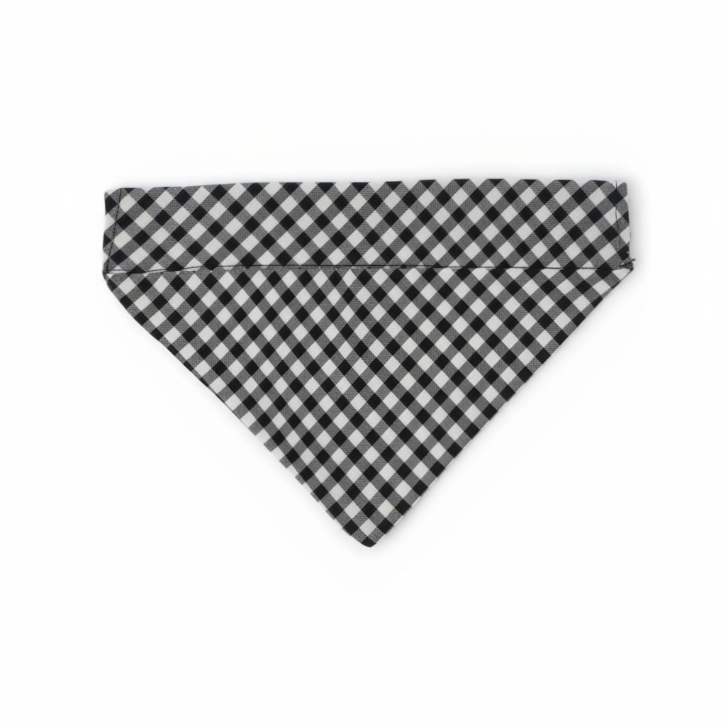 🌍 Handmade black and white gingham slip-on bandana.
