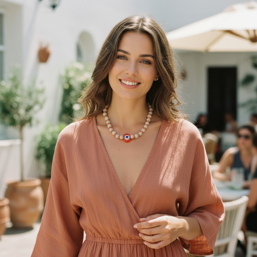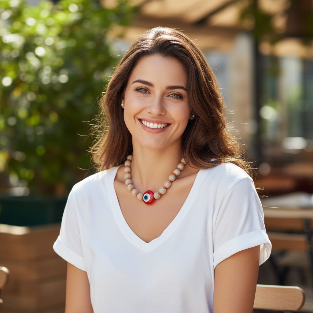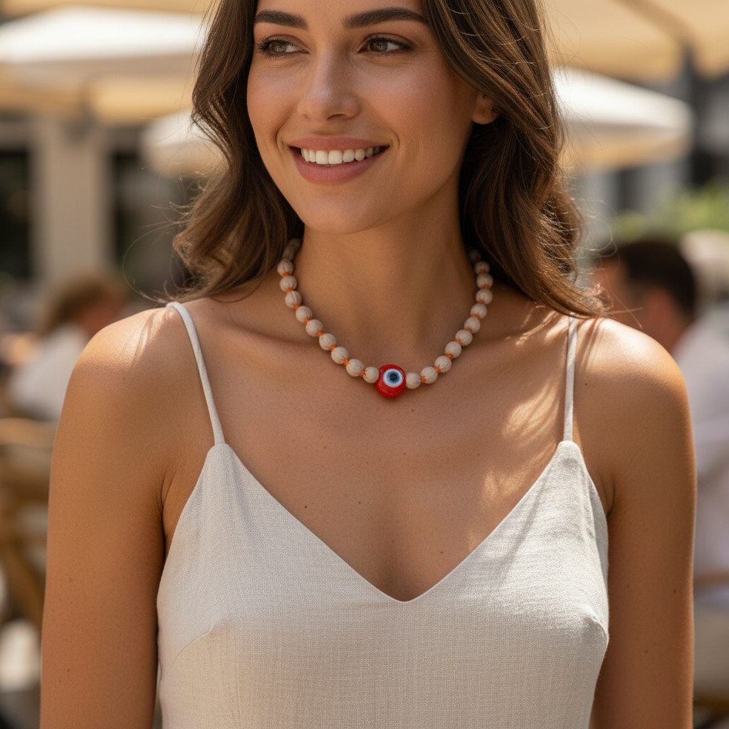 🔴🧿 Handmade eco necklace – neutral style, bold meaning.