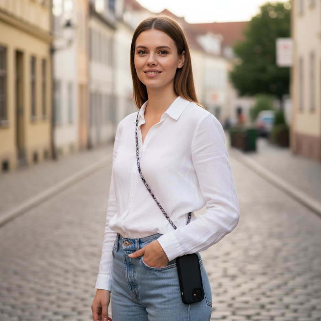 Minimalist stilin zarafetini yansıtan siyah-beyaz desenli kumaş telefon askısı, sade ama etkileyici bir görünüm sunar. FEDD Jewelry’nin el yapımı koleksiyonundan olan bu model, yumuşak kumaş dokusu ve sağlam yapısıyla günlük kullanımda konfor ve güveni bir araya getirir. Modern tasarımı sayesinde her stile kolayca uyum sağlar.