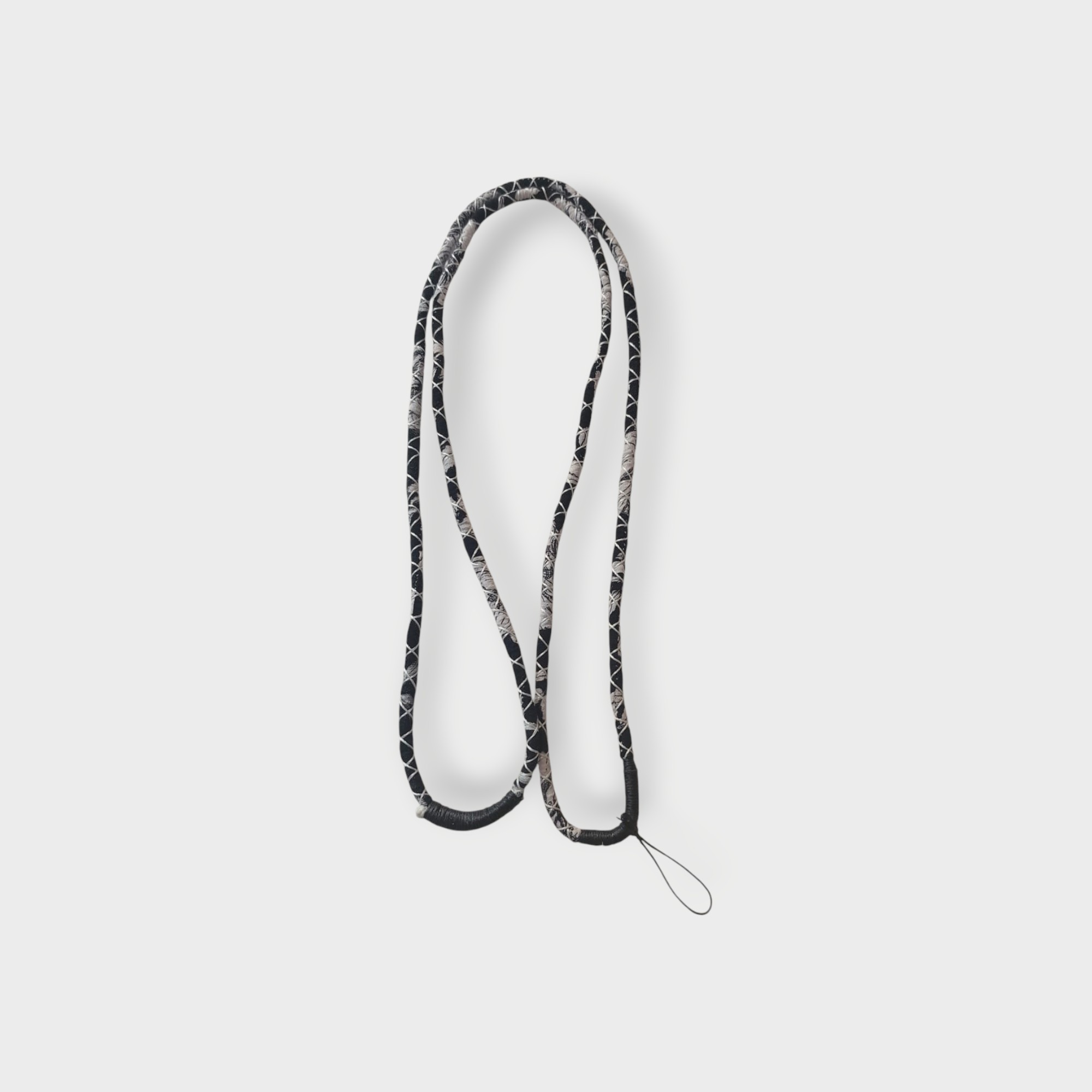 🌍 Handmade black and white patterned fabric phone strap with a minimalist and elegant design. Durable, soft, and stylish.