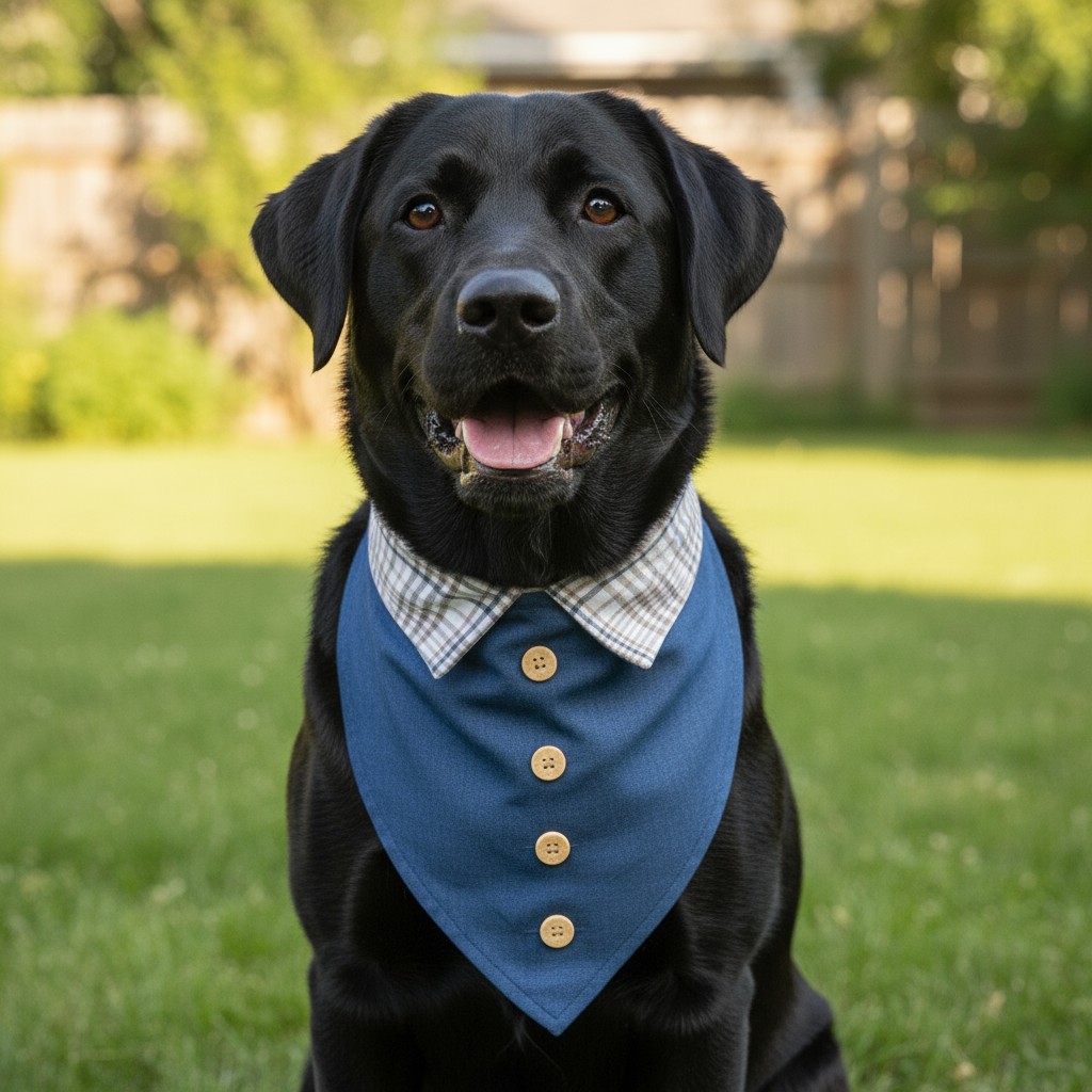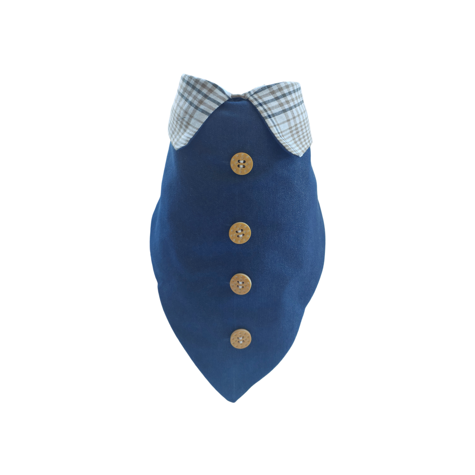🌍 Handmade denim bandana with plaid collar.