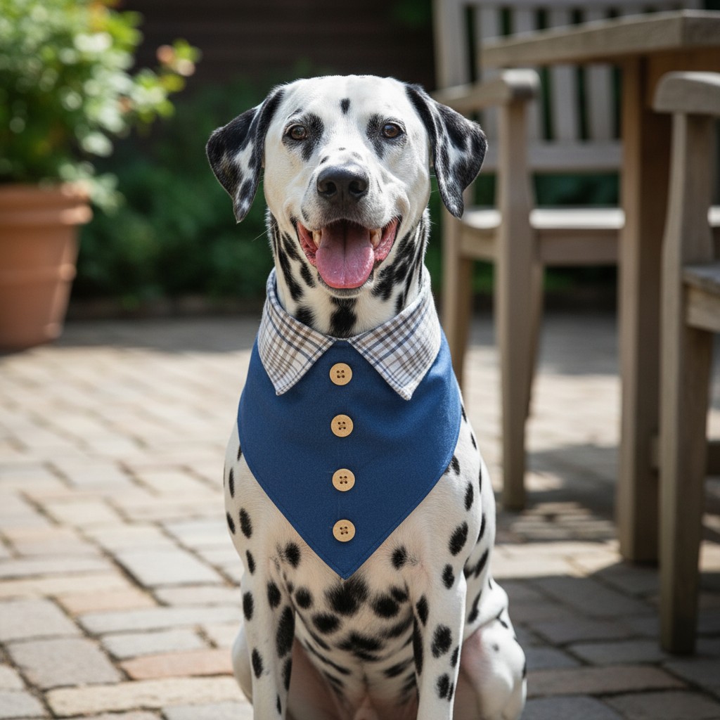 Denim Kumaş Ekose Yaka Detaylı Köpek Bandanası